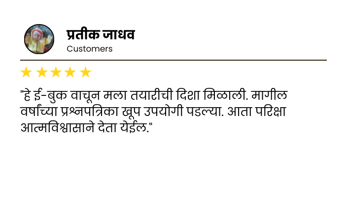 - ई-बुकमध्ये फक्त परिक्षेत विचारले जाणारे टॉपिक्स समाविष्ट आहेत, ज्यामुळे अभ्यास नेमका आणि परिणामकारक होतो.